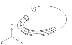 Vamos rodar os arcos em sentidos diferentes para mantê-los em contato, ou seja, sobre um dos seus pontos de toque. Porque a UCS está fixado para TOP View (vista superior), mude para Left View (vista esquerda) e depois Isometric View (vista isométrica) para definir a UCS para se adequar ao nosso uso.