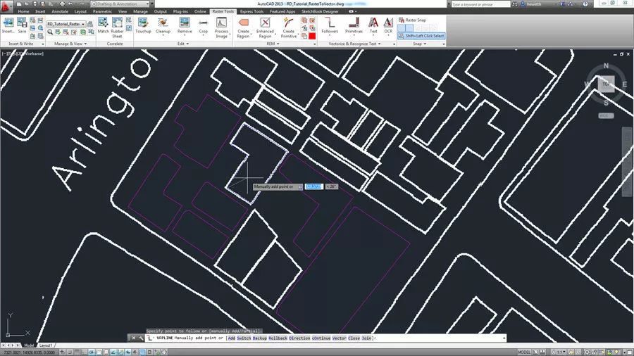 Com o AutoCAD Raster Design 2013 você pode facilmente converter seus desenhos em objetos AutoCAD DWG vetoriais. O AutoCAD vai reconhecer automaticamente as linhas do desenho, convertendo tudo para objetos vetoriais.